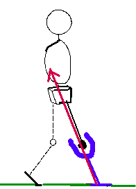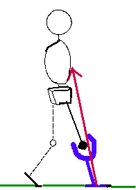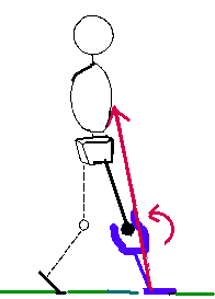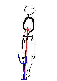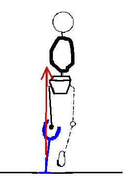 | Typical alignment for below-knee socketAn appropriately short heel lever permits GRF to move anterior of knee joint early in stance phase. |