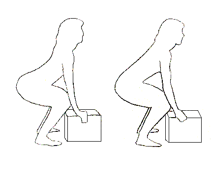 The vector construction illustrates a "trade-off" that therapists accept when they teach a person to use either of the two strategies for the squat lift.