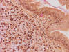 Synaptophysin: Immunohistochemistry for synaptophysin confirms the neuroendocrine nature of this tumor. |