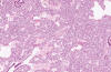 and lined by a thin layer of delicate, pale eosinophilic, amorphous