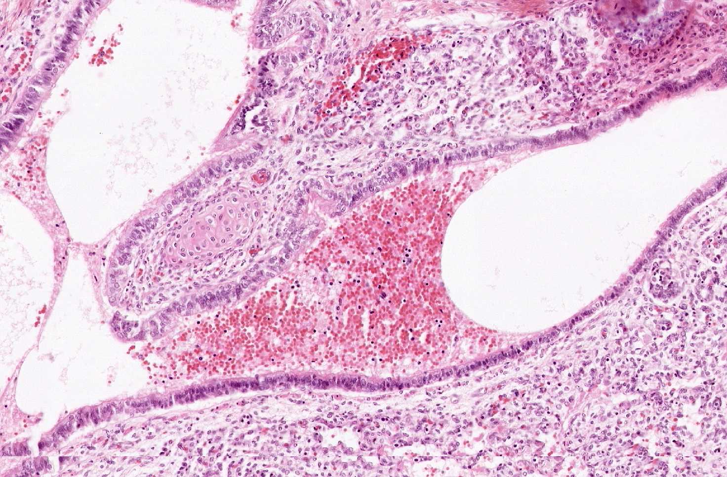 bronchi/bronchioles. On higher magnification, you can appreciate