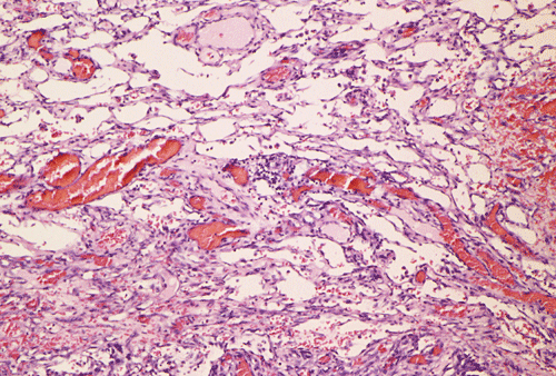 anaplastic endothelial cells. These vascular channels proliferate and infiltrate
