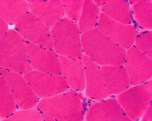 The patient had a history of hyperlipidemia and was treated with antihyperlipidemic drug including Lipitor and Lescol for 10 years but the treatment has been stopped 6 months ago. The patient also had a history of hypothyroidism and was treated by Synthroid but the treatment has been discontinued. At the time of the biopsy, a thyroid function evaluation was within normal limits. There was a history of hypertension and his blood pressure at the time of biopsy was 140/94 mmHg.. There was no history of low exercise tolerance or clauditation. There was no know family history of multiple sclerosis, muscular diseases, or other collagen vascular diseases. The patient was married. He smoked about three cigars per night. He chewed tobacco. He never used any illicit drugs. His father had high cholesterol and coronary artery disease.