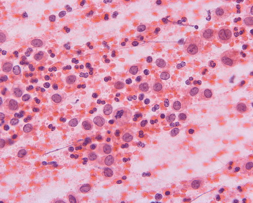 The inflammatory cell background in Hodgkin’s lymphoma is the source of confusion. Hodgkin’s lymphoma is most commonly seen in middle aged adults and most commonly presented with lymphadenopathy. Reed-Sternberg cells and lacunar cells are typical for Hodgkin’s disease. Langerhans’ cell histiocytosis usually does not attain the degree of pleomorphism of Reed-Sternberg cells. Langerhans’ cells histiocytosis can also be confused with some non-Hodgkin’s lymphomas. Immunohistochemistry is also helpful.