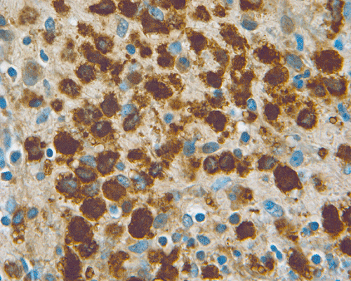 Morphologic features are often sufficient to make an accurate diagnosis. Typical lesions are composed of medium sized to large Langerhans’ cells mixed with non-neopalstic inflammatory cells. The amount of eosinophils can vary from none 3 or scant to substantial. The Langerhans’ cells have only slight degree of atypia. Many of the nuclei have a characteristic deep groove parallel to the long axis, the so-called “coffee bean” nuclei. The amount of cytoplasm is usually moderate. Histiocytes (macrophages) are usually present and can be multinucleated. When histiocytes are present in large amount, they may make the diagnosis difficult. Similar to their non-neoplastic counterparts, tumor cells in Langerhans’ cell histiocytosis are positive for CD1a and S100 by immunohistochemistry. Histiocytes, on the other hands, are negative for S100 and CD1a 4, 5, 6 CD68 is helpful but not entirely specific in separating histiocytes from tumor cells in Langerhans’ cell histiocytosis. The proliferating fraction of can be recognized by immunohistochemistry for Ki67 (MIB-1) 6.
