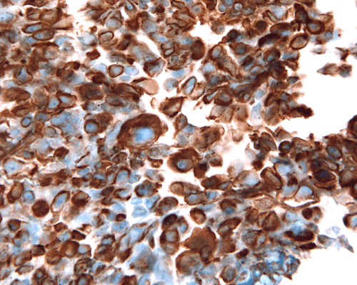 AT/RT often contains non-rhabdoid components with medulloblastoma-like components and sometime malignant and neoplastic epithelial and mesenchymal components. Rorke et al. published the first comprehensive series of 32 cases on rhabdoid tumors of the central nervous system and also used the term atypical teratoid/rhabdoid tumor (AT/RT) to describe these tumors [Rorke LB et al., 1996] as an attempt to emphasize the diverted histopathologic features in these tumors. Deletion and mutation of the SMARCB1 gene (synonyms: INI1, SMARCB1, hSNF5) in chromosome 22q11.2, and very rarely SMARCA4 which codes the BRG1 protein, are the molecular defining features of AT/RTs [Biegel et al., 2002]. A cell line has been established [Yachnis AT et al., 1998].