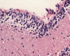 Panel A was a cytologic preparation (squash preparation) and Panel B was the frozen section obtained on intraoperative consultation respectively. Panel C, D, and E were permanent sections obtained from representative areas. Panel F, G and H were cerebellar tissue that was included in the specimen.