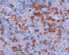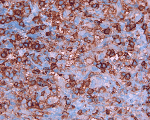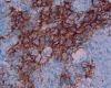 Immunohistochemically, the neoplastic cells show cytoplasmic membranous patten, sometimes diffuse cytoplasmic pattern, of staining for placental alkaline phosphatase (PLAP). Detection of c-kit (CD 117) in germinoma has been demonstrated and serves as a good diagnostic aid. Activating KIT mutations may contribute to tumorigenesis in germinoma 6, 7, 8. Syncytiotrophoblastic cells can be positive for human chorionic gonadotrophin (hCG). Occasional positive immunoreactivity for cytokeratin has been described and should not be taken as the sole evidence for embryonal carcinoma.