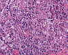It is important to distinguish germinoma from other germ cell tumors. Separation from teratoma should not be a problem in most situations. It is also important to know that teratoma and dermoid cysts tend to arise in the cerebellopontine angle far more often then the pineal or suprasellar region. Recognition of non-seminomatous component is important and is essentially by morphology. Immunohistochemistry can be helpful as yolk sac tumor (endodermal sinus tumor) are positive for alpha-fetal protein, choriocarcinoma are positive for human chorionic gonadotrophin, and embryonal carcinoma are positive for CD30 and cytokeratin. The syncytiotrophoblastic cells in germinoma should not be taken as evidence as choriocarcinoma.
