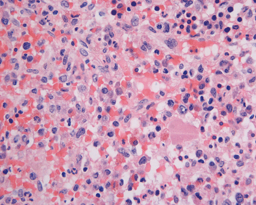 In the bone marrow, three morphologic patterns of mast cell accumulation have been recognized. Type I shows focal clusters of mast cells with preservation of bone marrow fat and other hematopoetic elements. The burden of mast cells is more in Type II and usually shows patchy clusters of mast cell replacing bone marrow in a hypercellular marrow background with osteosclerosis and fibrosis. Type III is diffuse replacement of the marrow space with mast cells, often with circulating mast cells in peripheral blood. It is also important to note that mast cells are easily over looked on routine H and E stain or are mistaken for histiocytes.