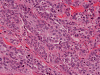 On medium magnification, the tumor is composed of nests of cells that have