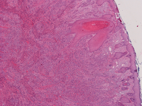 Pathology of the Case: The tumor is covered by