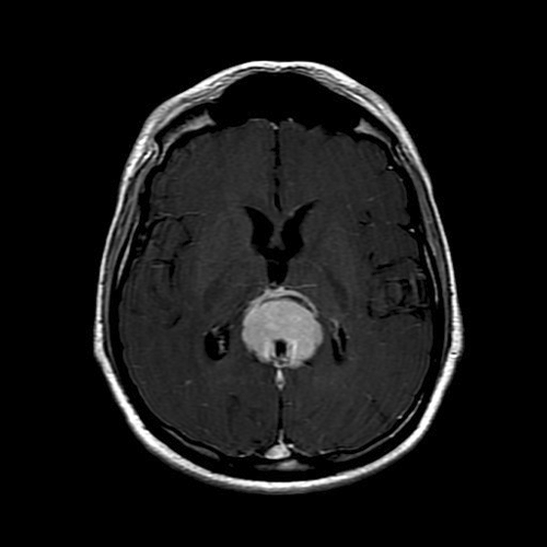 There are several different types of germ cell tumors, each with a different frequency of occurrence. Germinomas are the most common, accounting for 65% of cases, followed by teratomas at 18%, endodermal sinus tumors at 7%, embryonal carcinomas at 5%, and choriocarcinomas at 5% 3. Regardless of type, a male predilection is seen with one series demonstrating an 11:1 male to female ratio. As with most intracranial neoplasms, the clinical presentation depends on the size of the mass, location and associated structures affected. Pineal masses can cause obstructive hydrocephalus leading to nausea, headache, vomiting and lethargy. Pineal masses also commonly present with Parinaud’s syndrome, a triad consisting of the following symptoms: vertical gaze paralysis, dissociation of light and accommodation, and loss of convergence, due to compression of the tectum. Suprasellar masses can lead to disturbances in vision, such as bitemporal hemianopsia, various forms of pituitary endocrine abnormalities, such as elevated prolactin, and diabetes insipidus.