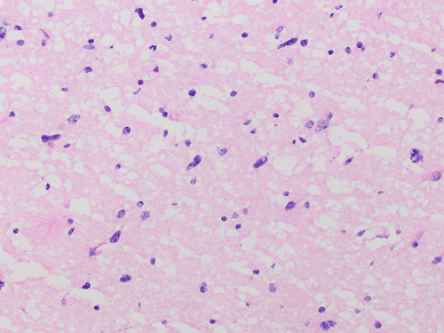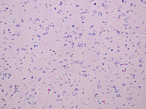 neoplastic glial cells in a background of non-neoplastic cells. This is a