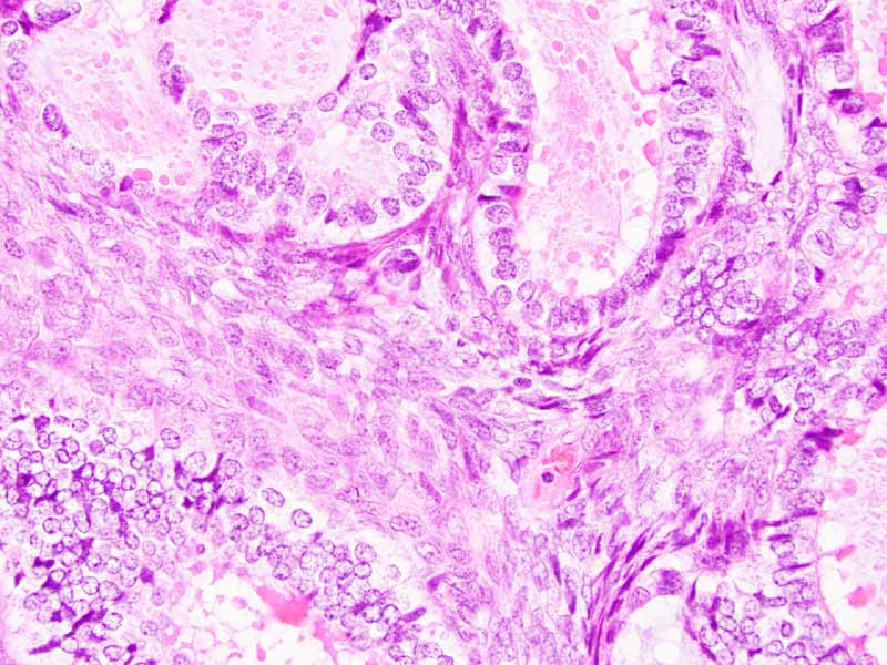Clinical information: The patient was a 37 year-old woman with a deep 5.5 cm popliteal mass. Based on the FNA finding, the mass was excised and yielded the following images.