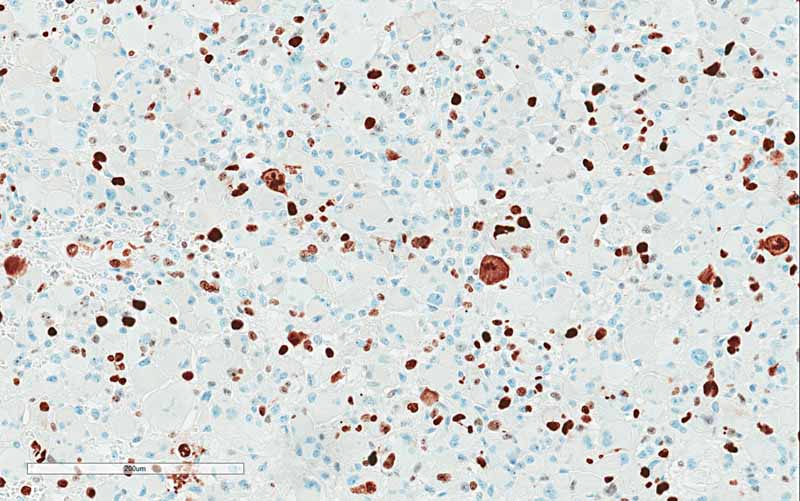 In the modern practice, immunohistochemistry is typically employed to