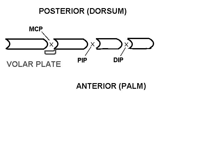 - a fibrocartilaginous volar plate is lined with hyaline cartilage so that it augments or enlarges the proximal phalanx' relatively small articular surface.