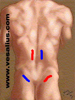 You can combine the gluteus medius facilitation with another that is directed at the "paraspinal" muscles (the muscles that are "near the spine," that is, the erector spinae and transversospinalis groups). To understand the paraspinals' timing during the gait cycle, palpate them on yourself by placing the fingers of either hand on both sides of the midline of your back. Assess the paraspinals' activity as you walk. Correlate what you feel with information on muscle activity.