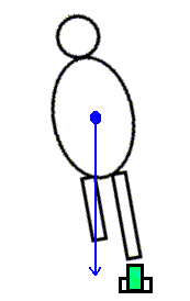 Gravity's line of application (also called the "gravity line") proceeds vertically from the body's center of gravity into the floor. If you maintained your balance on one foot, you know that the line always passed into your one-footed base of support. Even so, the line moved back and forth as your body swayed. When, for example, gravity's line of application moves anteriorly with respect to the ankle's axis, it produces a dorsiflexion moment at ankle, and necessitates activity in the plantar flexors. Conversely, when gravity's line of application moves posteriorly to the ankle's lateral axis, gravity's force plantar flexes the ankle. In response, dorsiflexors activate, and may lift the toes from the floor.