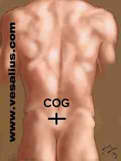 COG located at sacral promontory, anterior to S2 (PSIS), at 55% of body height