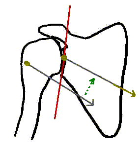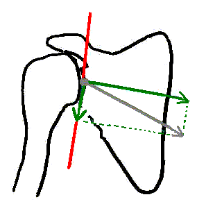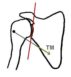 | The muscle's force vector (TM) is illustrated, along with a reference line that represents the glenohumeral joint's surface