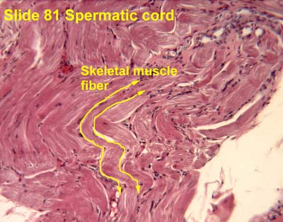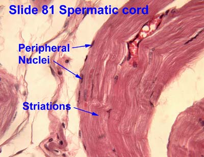 Slide 77 Skeletal muscle, cross and longitudinally sectioned.