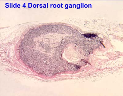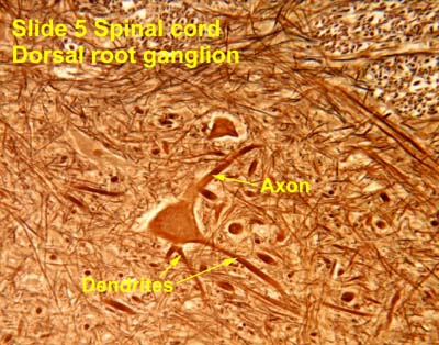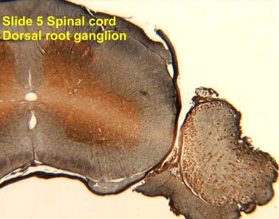Slide 5 Spinal cord and Dorsal root ganglion, Cajal stain.