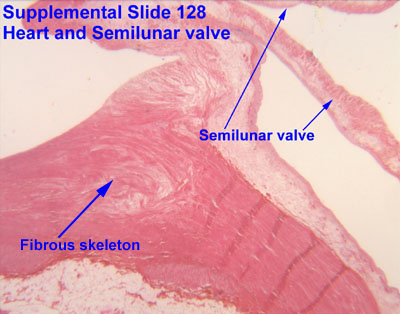 Examine the fibrous skeleton and observe that it is composed of very dense connective tissue and that histologically, it resembles a tendon (the fibrous skeleton of the heart is actually made up of circular tendons).