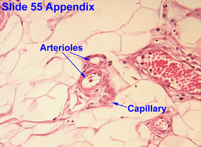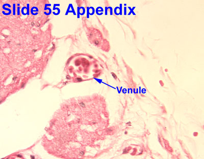 In the submucosa and adventitia of the appendix, observe venules , capillaries , and arterioles .