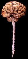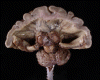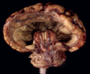 On the frontal view, the two cerebral hemispheres appear to be fused in the