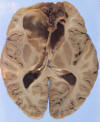 temporal lobe and lower frontal-parietal lobe on one side. The pathologic