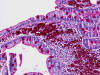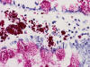 Periodic acid Schiff (PAS) stain: The microorganisms are strongly positive for PAS (purple-red). |