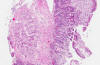 History: The patient was a 45 year-old man with weight loss, worsening joint pains, fever, and night time sweats. Blood culture, urine culture, and PPD test were negative. An abdominal x-ray showed non-specific mesenteric lymphadenopathy. A biopsy of the upper gastrointestinal tract was performed. The current biopsy was obtained from the duodenum.