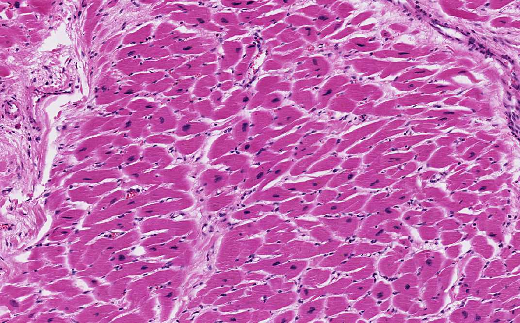 cardiac muscle. The myocytes increases in width. The normal cardiac