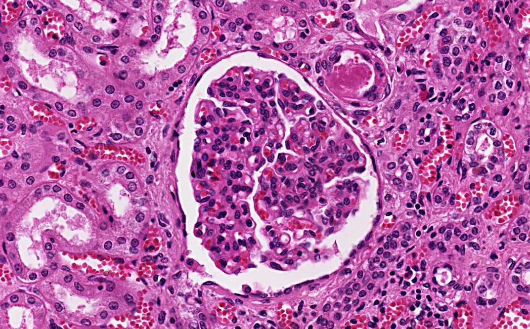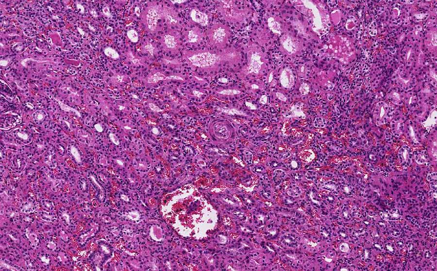 and infiltrated by neutrophils and the glomerular blood capillaries