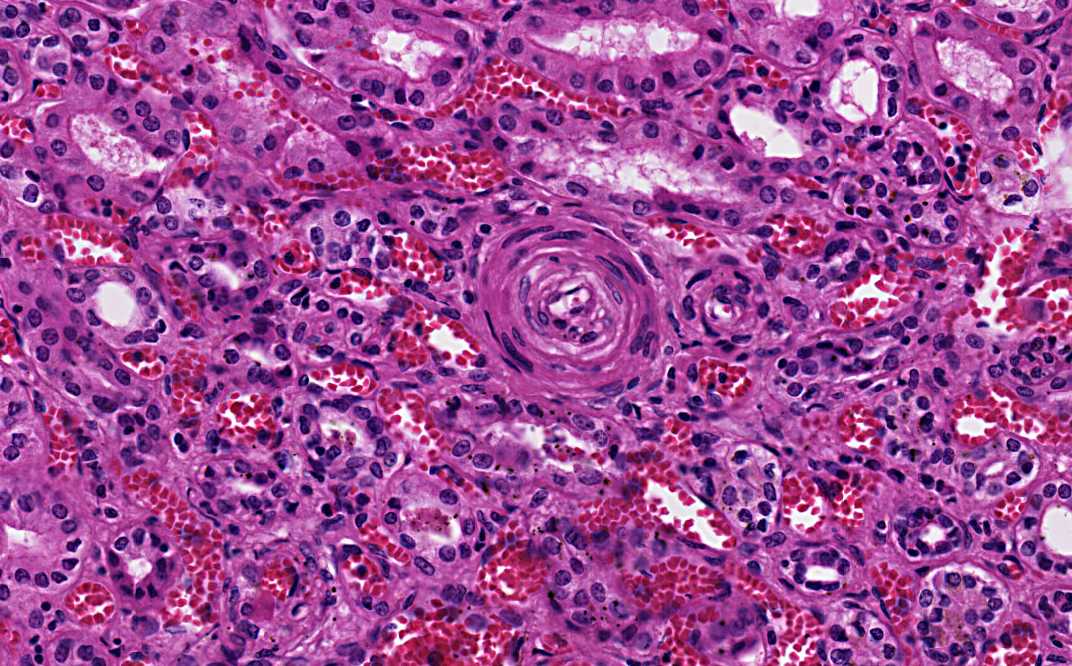 section of an onion (onin-skinning of vessels). (Kidney- Area 1 and