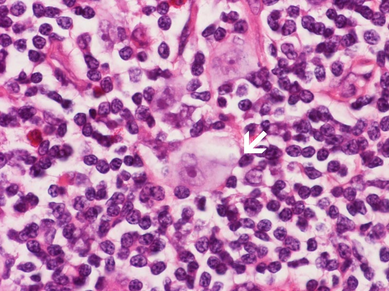 eosinophilic nucleolus. Diagnostic RS cells must have