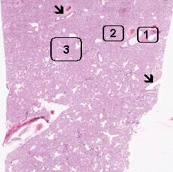 bronchi/bronchioles. On higher magnification, you can appreciate