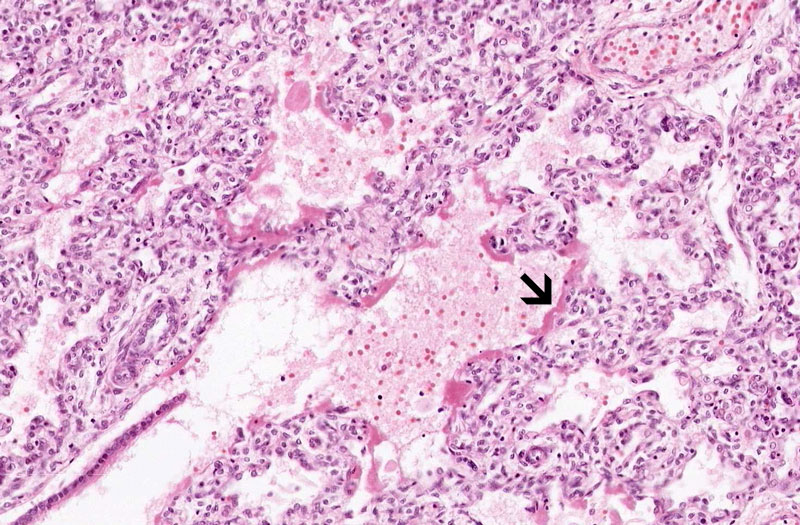 Edematous fluid and sometimes hemorrhage (not in this case) can be