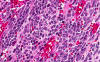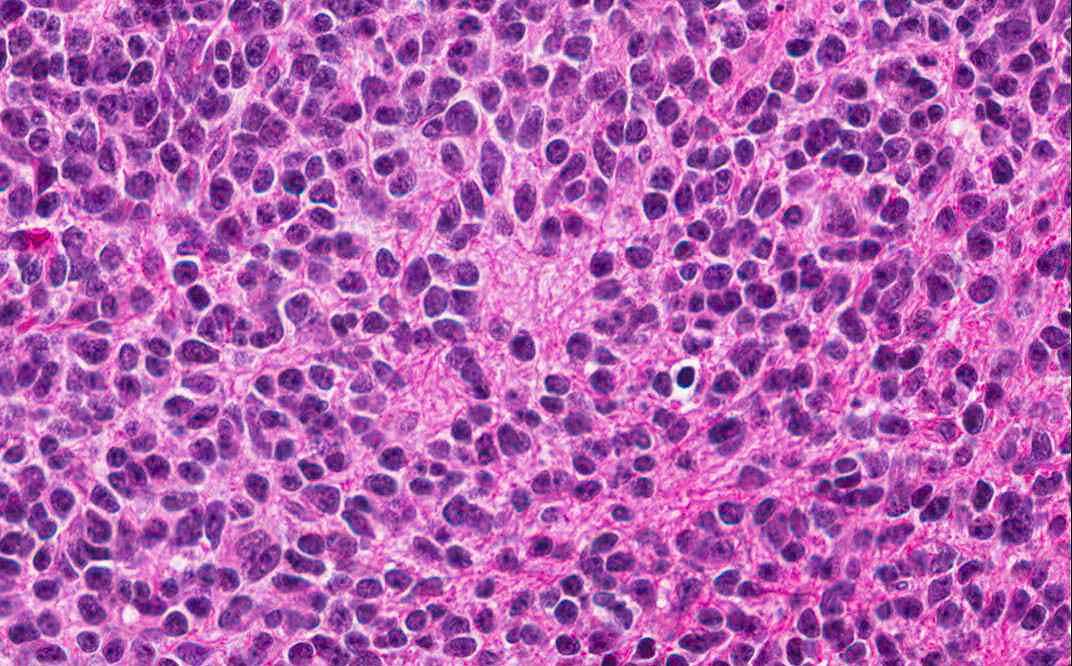 The tumor grow as a solid sheets composed of small blue cells. Although