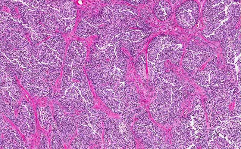 fibrovascular septa in between the tumor cells. When the leptomeninges