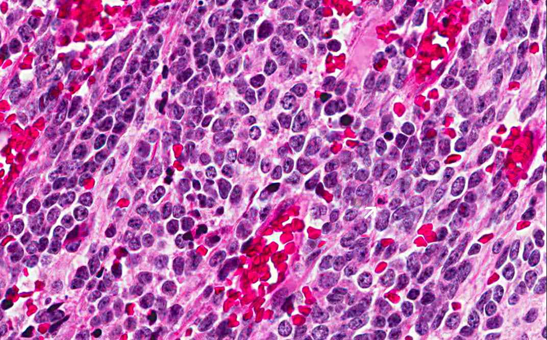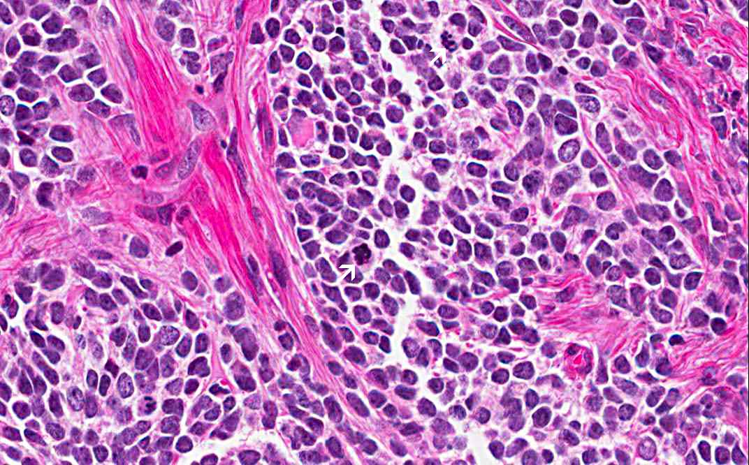 Mitosis: Similar to other small blue cell tumors, mitotic figures