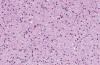 History: The patient was a 25 year old woman who complained of headache. MRI revealed a large, non-enhancing tumor in the frontal-temporal lobe. The mass was excised and yielded the current specimen.