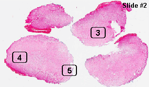 psammoma bodies are present (area 3). The sclerotic blood vessels