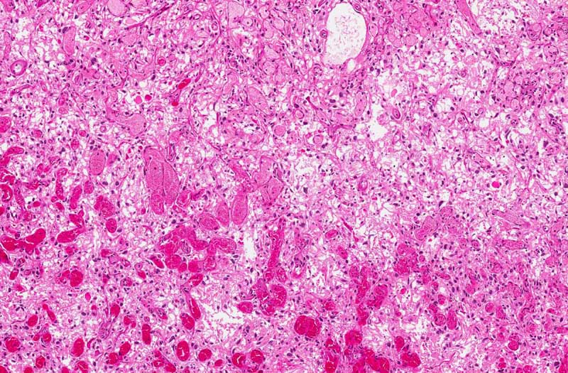 mitosis. The neoplastic meningothelial proliferation often has microcystic