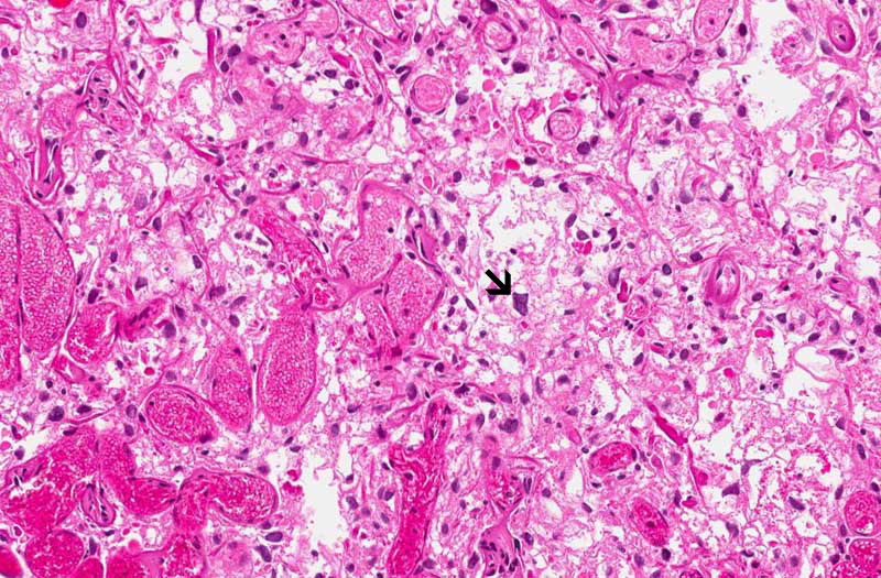intranuclear inclusions or high grade pleomorphism. No definitive