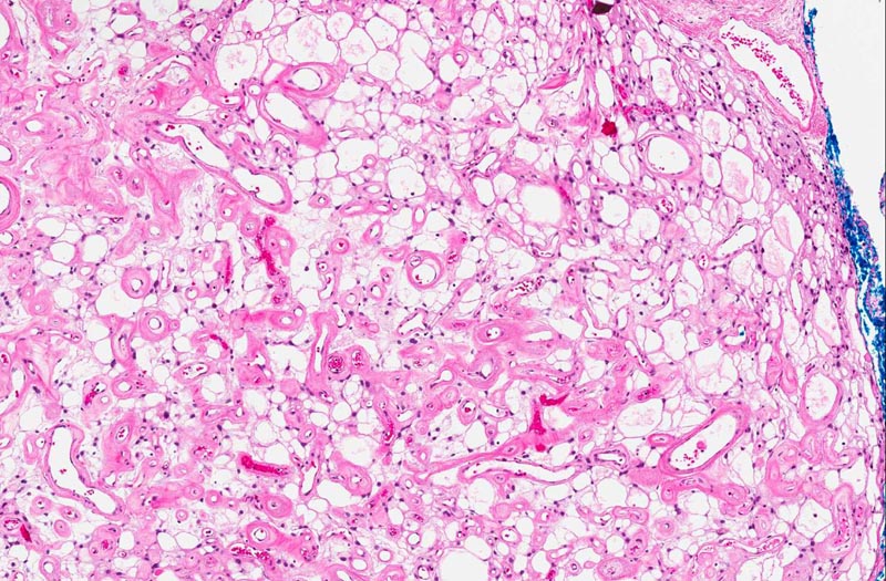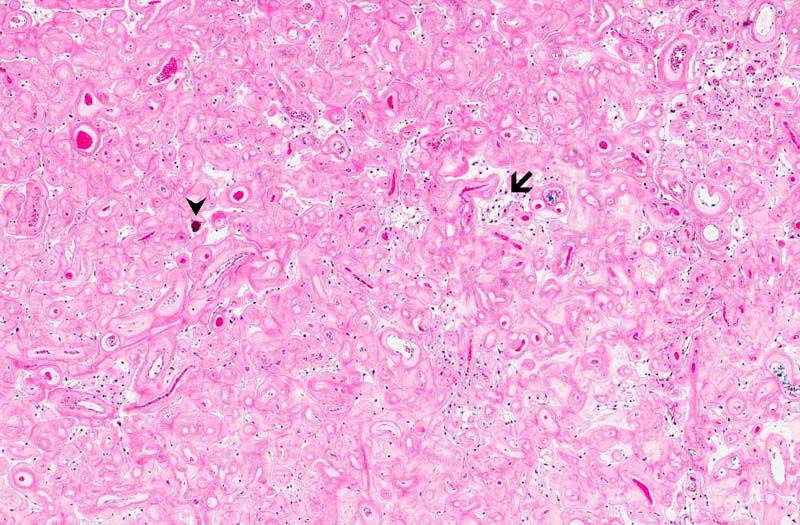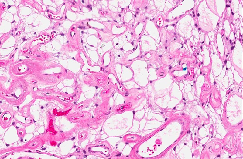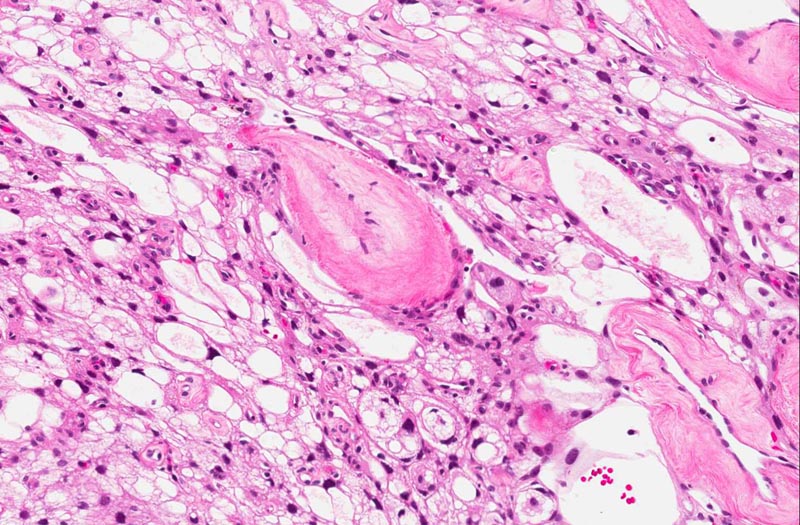 microcystic changes, degenerative atypia of nuclei, and sclerotic