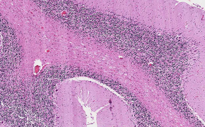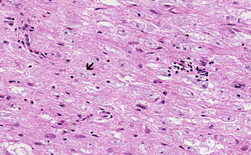 History: This slide was taken from the archive and the history was not provided. This specimen was obtained from the autopsy of a case with know x-linked adrenoleukodystrophy.