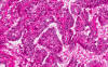 Area 2: Note the papillary growth pattern. It is featured by fine villous or finger like fibrovascular stroma lined by neoplastic epithelial cells. The nuclei are enlarged, often have nuclear grooves and pseudonuclear inclusion. Overlapping of nuclei is also common. |