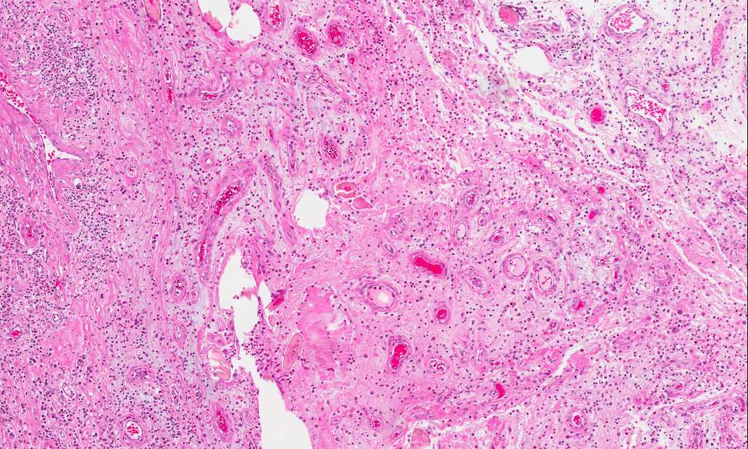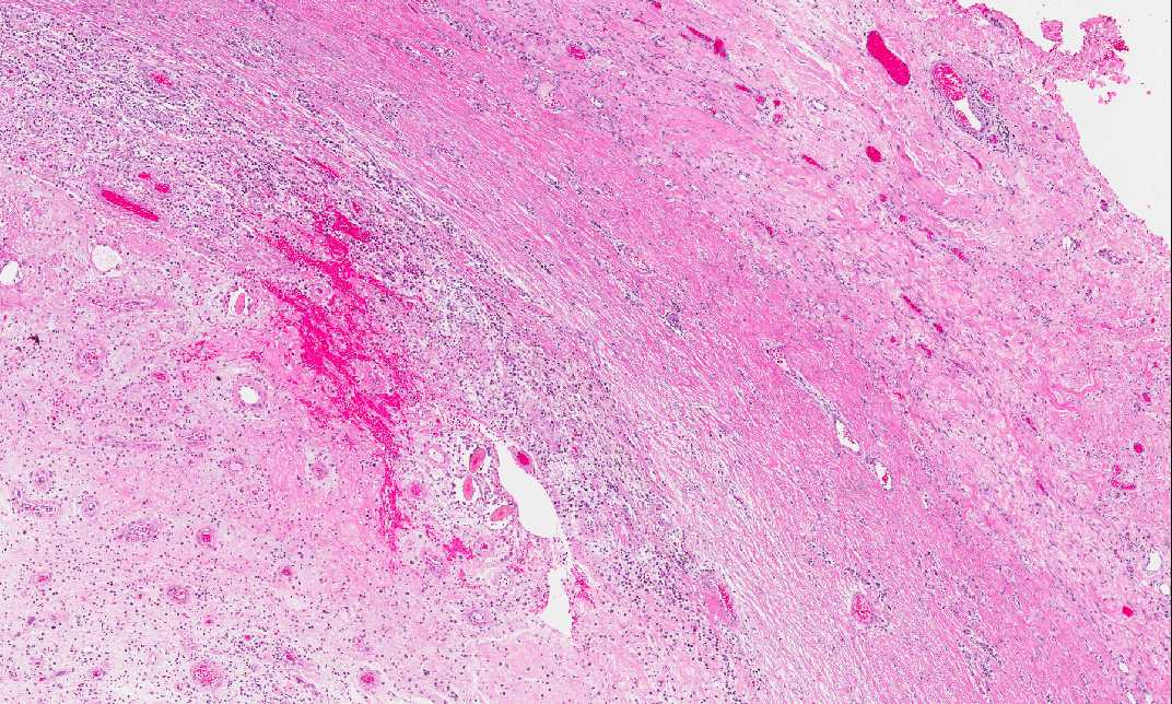 Area 4: The pathologic changes are very similar in different parts of the cystic lining. |